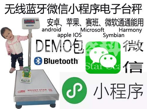 在WeChat微信小程序中連接藍牙電子計重秤(電子秤品牌:山星盛MOUNT STAR),直接通過藍牙獲取當前稱重的重量數據,然后顯示在weixin界面上。山星盛電子科技是一家衡器硬件設備提供商,我們專業提供ERP管理系統PC,APP,APK,POS,PDA,安卓The android和蘋果apple手機IOS及android操作系統,電腦端微軟Microsoft安裝版及文本直接傳送的電子秤,平臺秤,物聯網電子稱,藍牙無線電子秤,WIFI電子秤,手機軟件直連手機等稱重設備,買我們電子秤能提供騰訊微信小程序demo程序開發包,還能提供安卓和蘋果手機APP軟件電子秤連接的demo指導文件及開發包供您開發自己的軟件。